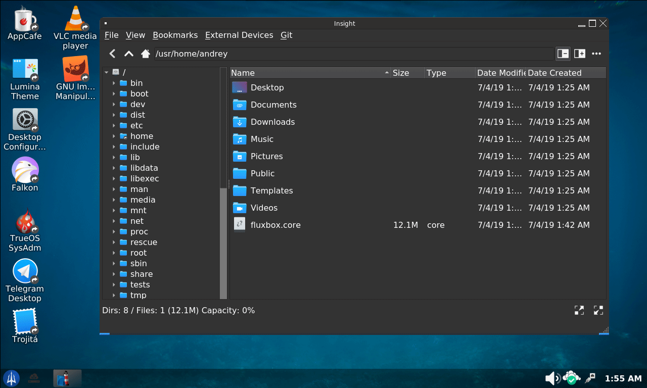 В процессе этого пути разработчики видимо решили, что как лодку назовете - так она и поплывет, и сменили название системы на довольно амбициозное и пафосное TrueOS. Также дистрибутив обзавелся собственным легковесным окружением Lumina.