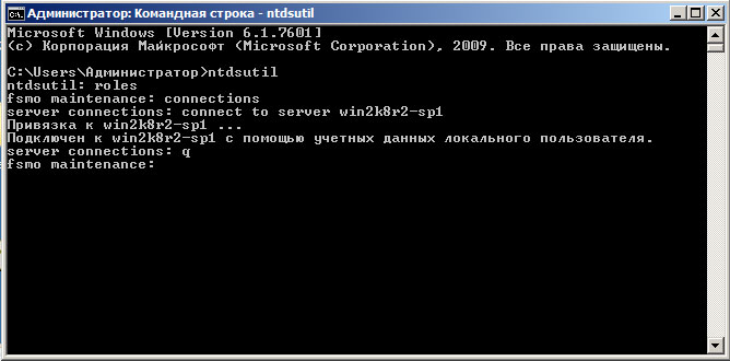 Как видим, использование утилиты ntdsutil нисколько не сложно и даже более удобно, чем управление ролями при помощи оснасток MMC. Кроме того возможности ntdsutil не исчерпываются управлением ролями, но об этом мы расскажем в следующих материалах.