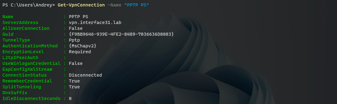 В целом PowerShell предоставляет достаточно широкие возможности по простому и удобному управлению VPN-соединениями на компьютере и позволяет решать множество связанных с этим задач в один клик, используя скрипты и командные файлы.