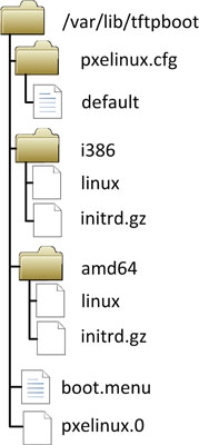 Перейдем в каталог /var/lib/tftpboot в котором будут размещаться наши файлы для сетевой загрузки. В его корне разместим файл pxelinux.0, его можно взять из любого дистрибутива, он везде одинаков.