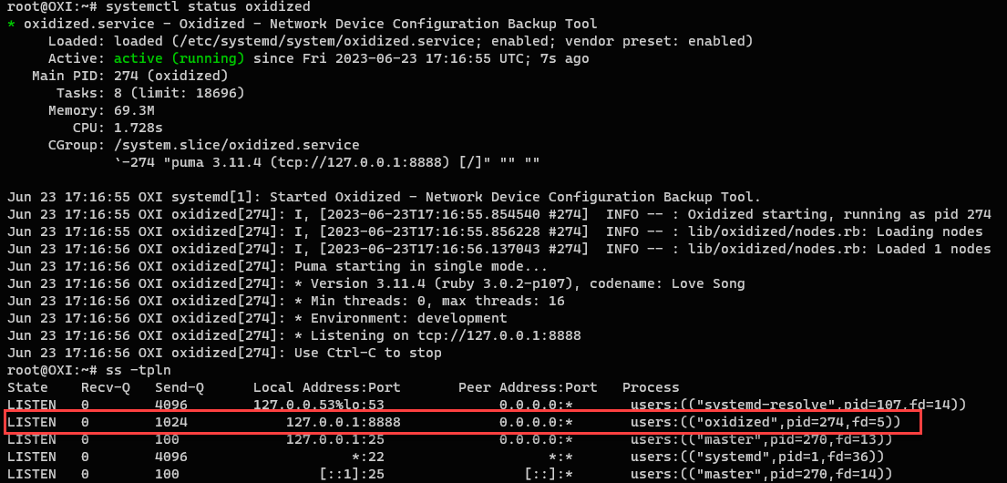 Если вы получили аналогичный результат, то oxidized был успешно установлен и работает.