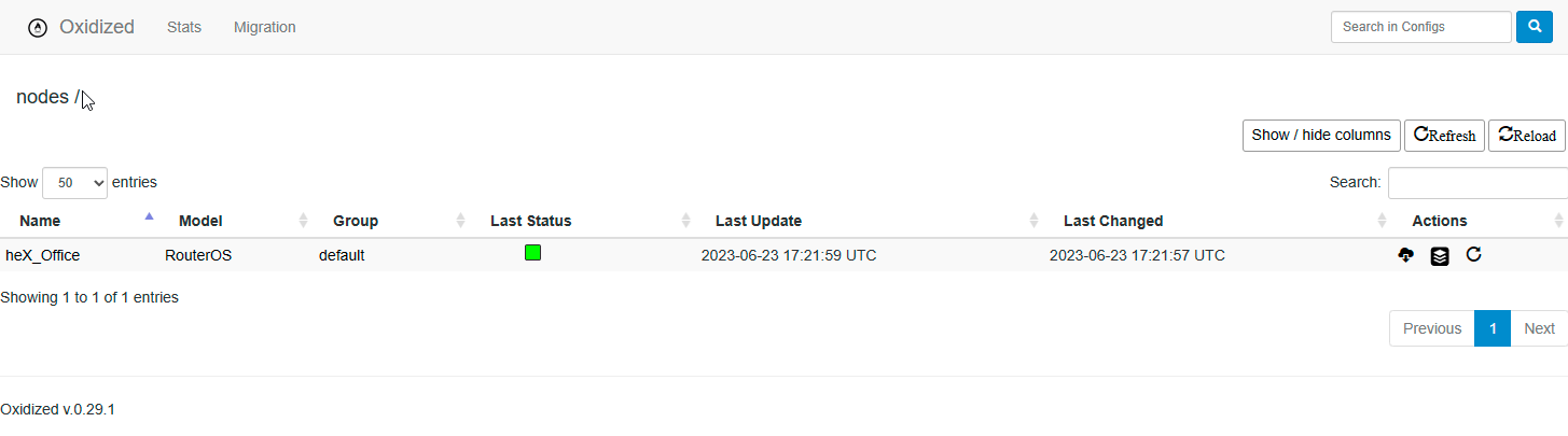 Теперь можем набрать в браузере адрес узла с oxidized и попадем в его веб-интерфейс.
