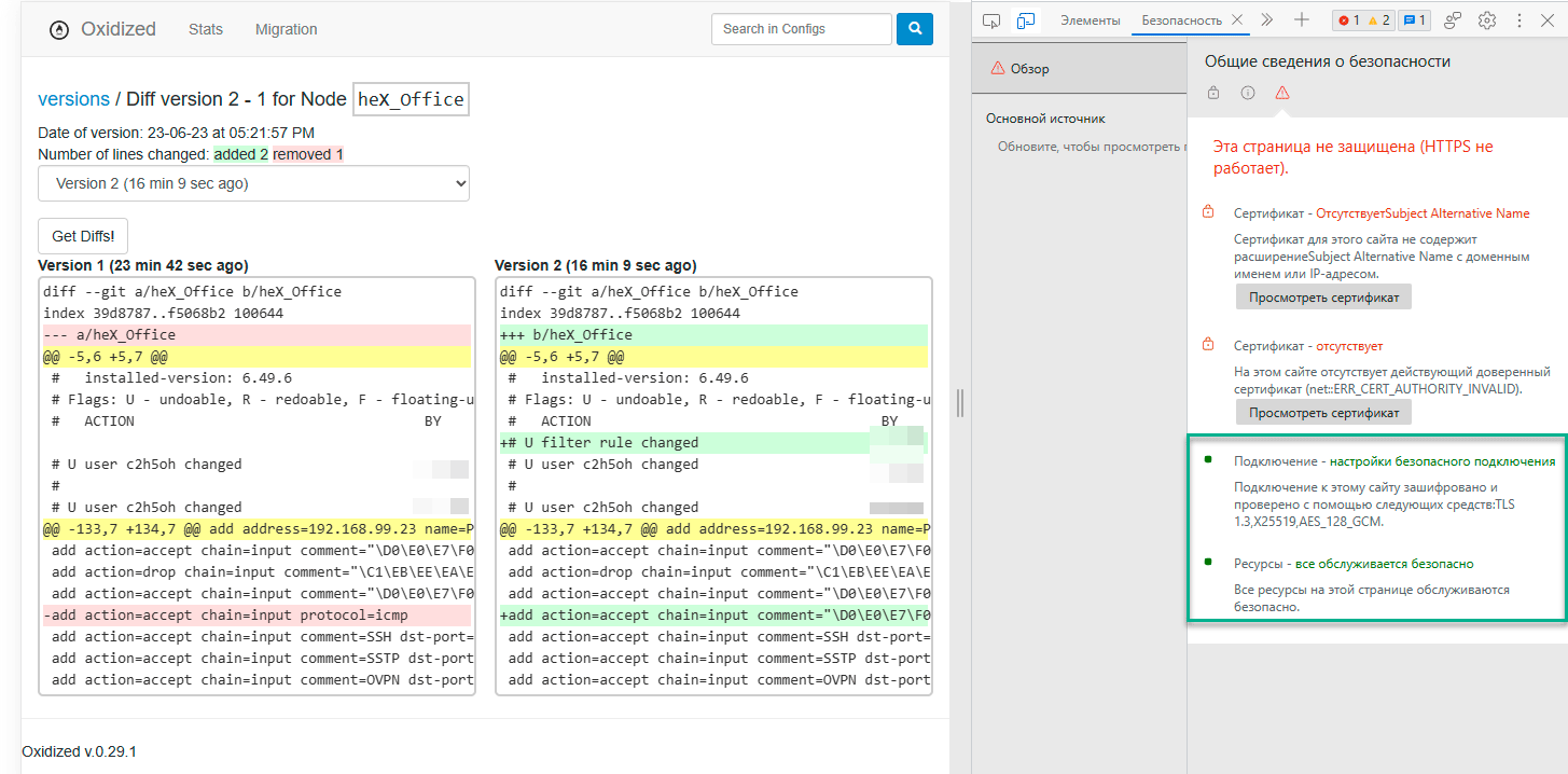 В целом, на этом можно и закончить, но имейте ввиду, что абсолютно любой желающий может набрать в браузере адрес oxidized и получить полный доступ ко всем конфигурациям и данным в них. А это неправильно, поэтому примем меры по ограничению доступа. Первое, что нужно сделать в нынешних реалиях - это включить шифрование.