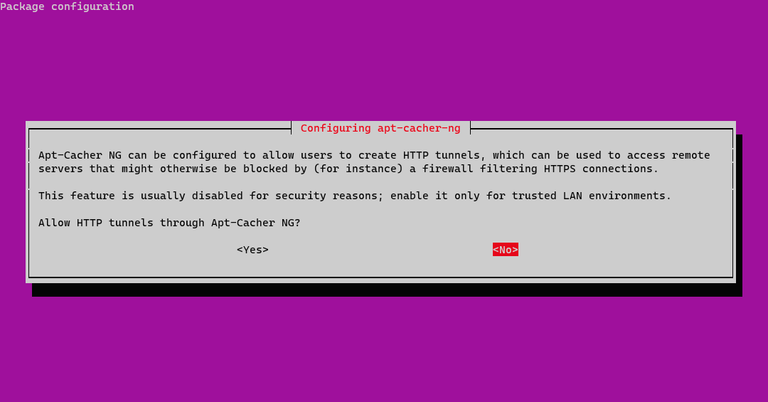 В процессе установки вам будет задан вопрос: разрешаете ли вы использование HTTP-туннелей. С одной стороны это облегчает работу с программой, в частности при доступе к HTTPS-репозиториям, с другой создает угрозу безопасности, так как пользователи смогут использовать такой туннель не только для скачивания обновлений, но и для выхода в интернет. Если для вас это не критично, то рекомендуем использование туннелей разрешить, что упростит дальнейшую эксплуатацию.