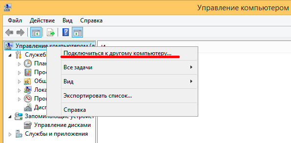Выполнив данные настройки можно запустить консоль MMC Управление компьютером и щелкнув правой кнопкой на одноименном корневом пункте выберите Подключение к другому компьютеру и укажите имя сервера Hyper-V.
