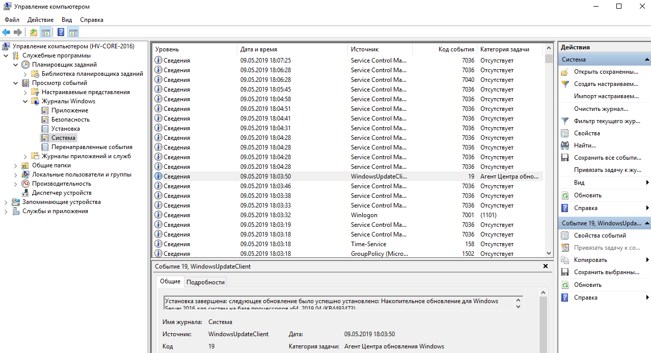 После чего вы сможете управлять удаленным сервером используя привычные инструменты. Можно просмотреть журнал событий: