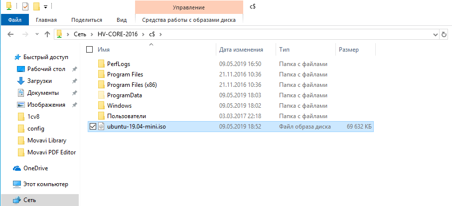 Для того, чтобы установить ОС на виртуальную машину нам потребуется передать на сервер Hyper-V установочный образ, это можно легко сделать через подключение к стандартным общим ресурсам, например, набрав в адресной строке проводника:
