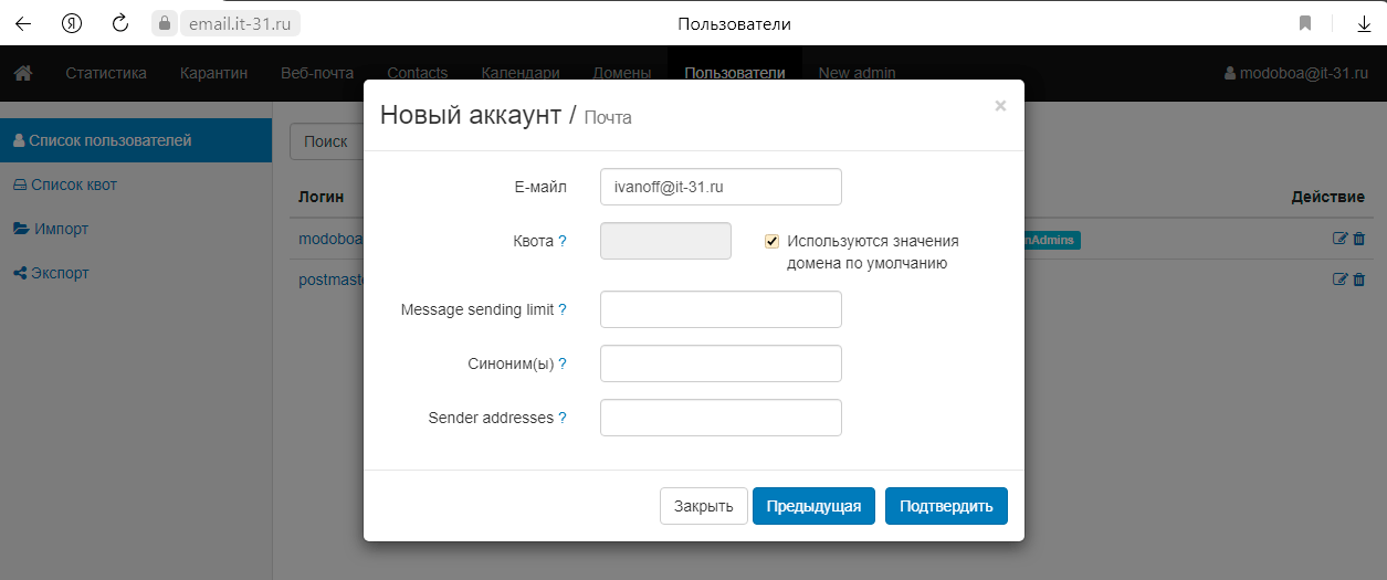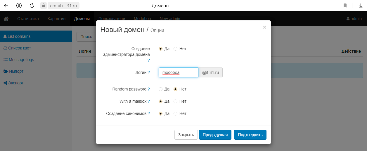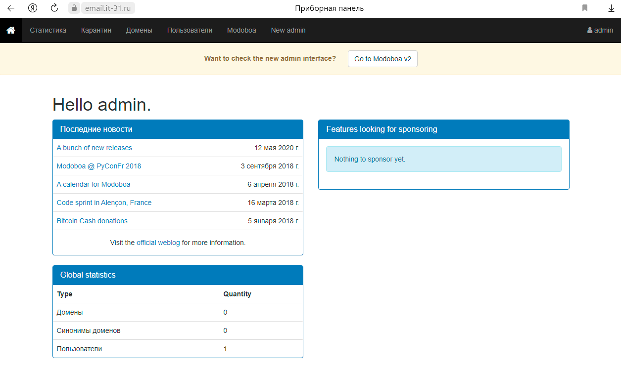 Установка и настройка почтового сервера Modoboa в Debian или Ubuntu