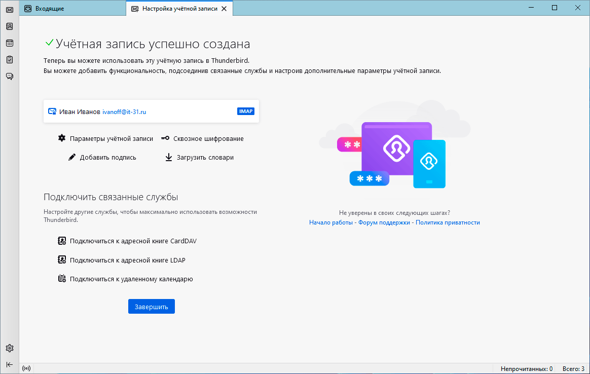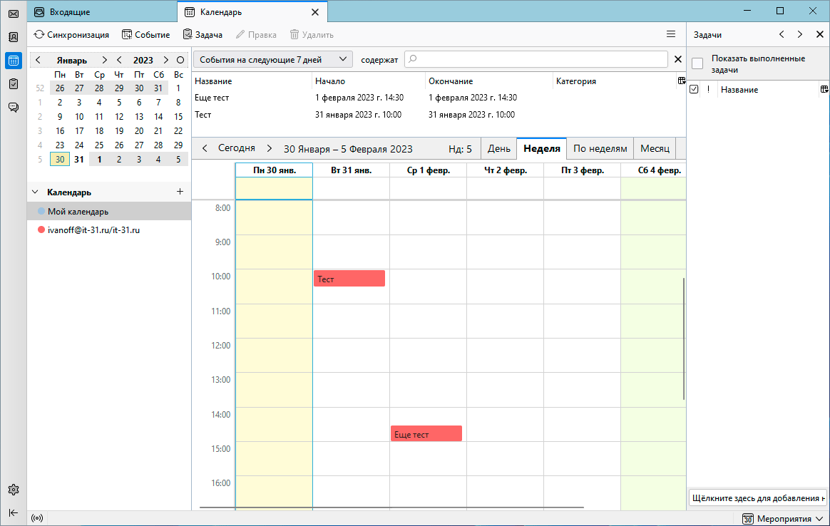 Тоже самое делаем и для адресной книги, но для нее также потребуется разрешить синхронизацию в настройках учетной записи. После чего можем полноценно работать с нашим сервером через почтовый клиент.