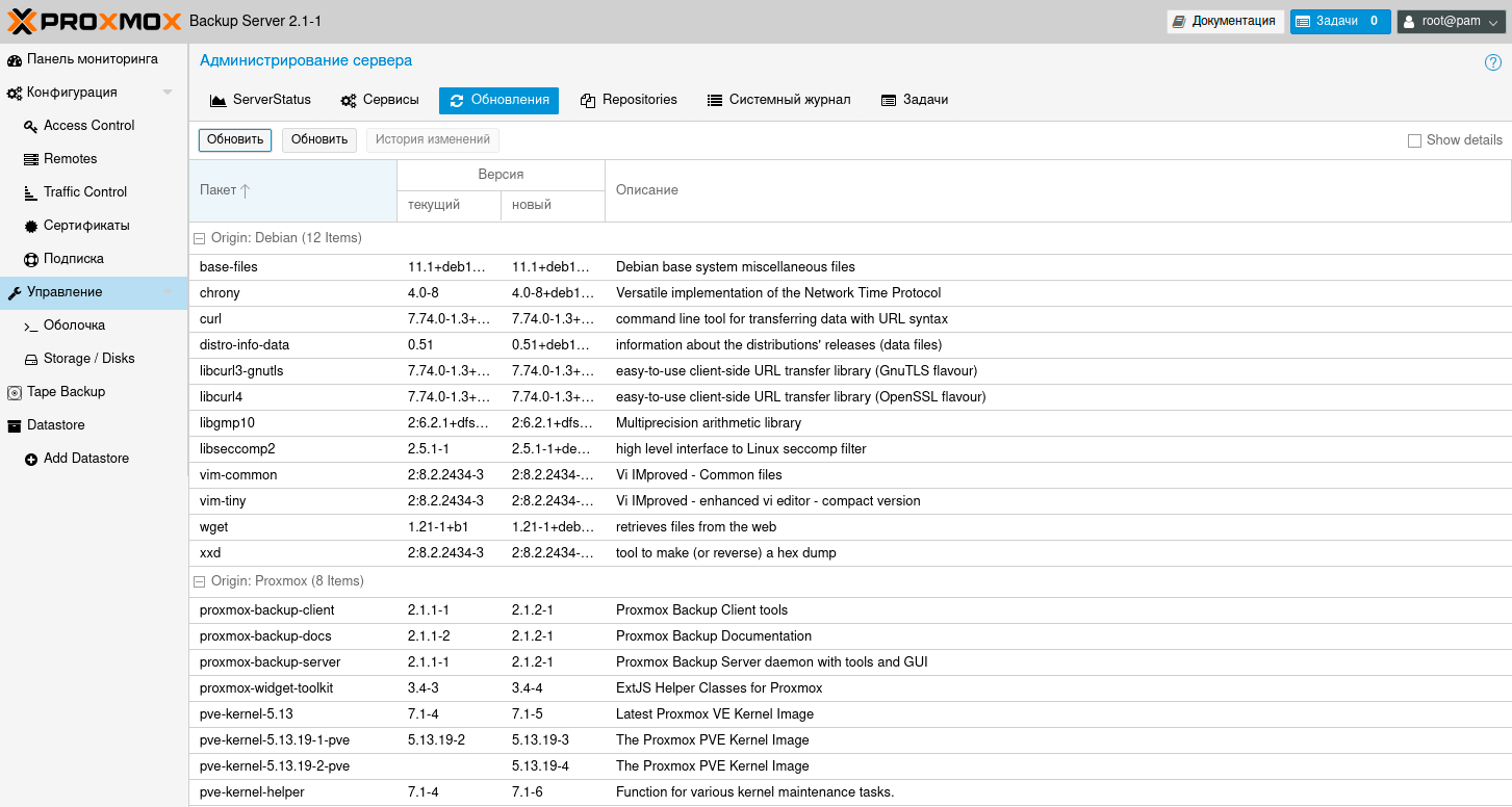 Теперь, когда хранилища настроены и пользователи созданы самое время подключить наш сервер резервного копирования к гипервизору и настроить их совместную работу. Все современные версии Proxmox Virtual Environment поддерживают работу с Backup Server "из коробки", но в любом случае мы советуем обновить пакеты гипервизора до самой последней версии.