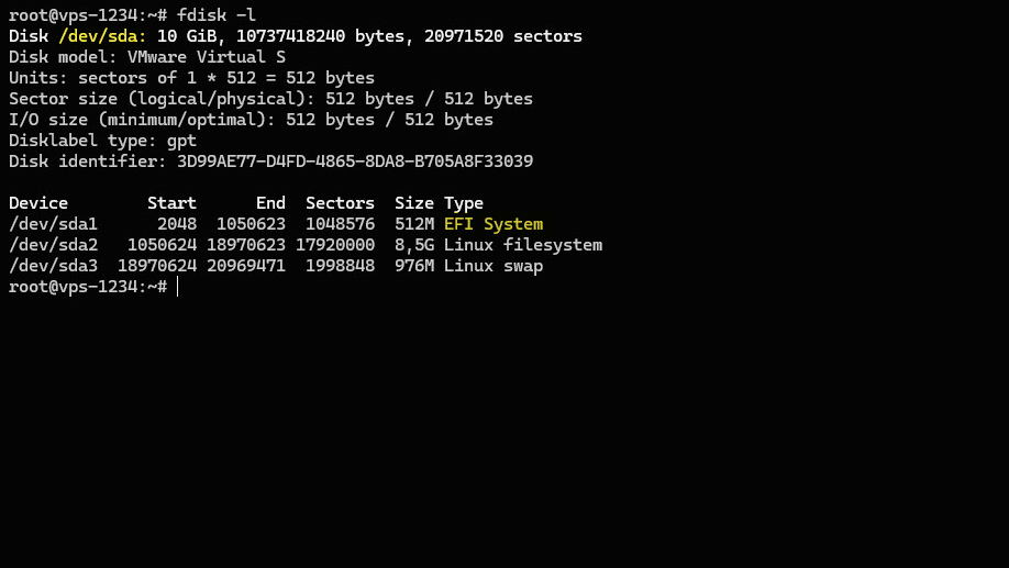 В выводе найдите имя диска и посмотрите на тип загрузочного раздела, в нашем случае виртуальная машина имеет UEFI-загрузчик.