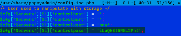 5$cfg['Servers'][$i]['controlpass'] = 'ibuQKE!6RGL$2Ph!';