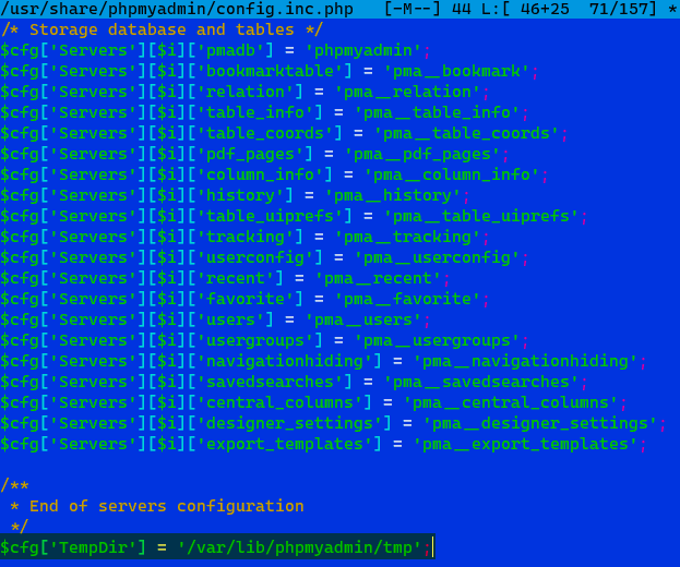 1$cfg['TempDir'] = '/var/lib/phpmyadmin/tmp';