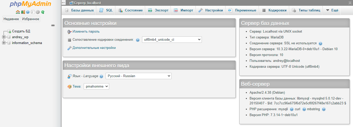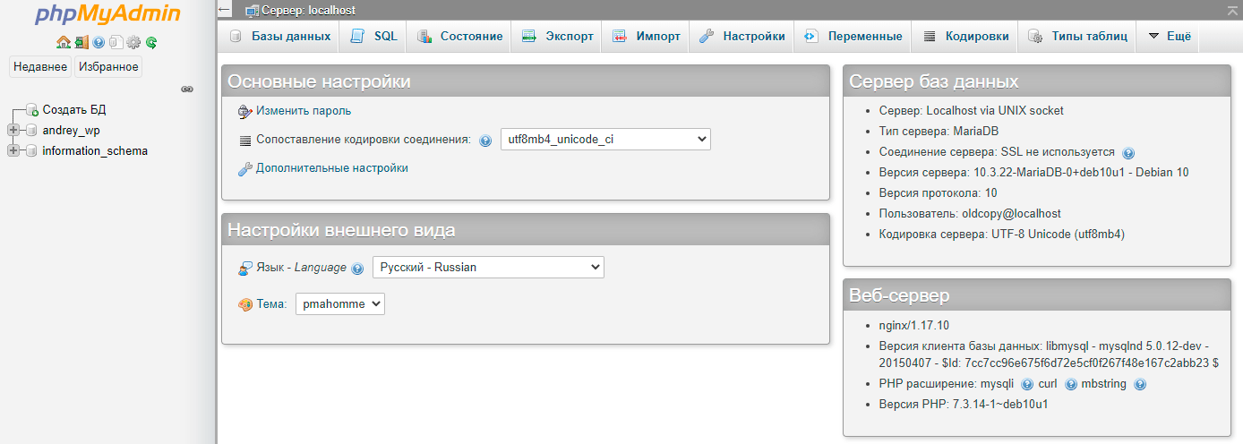 Установка phpMyAdmin в Debian 10