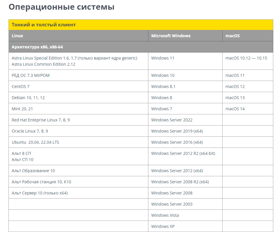 Что касается работы с 1С, то выбор дистрибутива должен начинаться здесь: Системные требования 1С:Предприятия 8, данный список постоянно изменяется, поэтому ниже его скриншот.