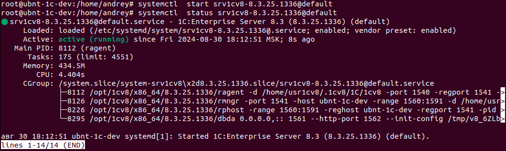 1systemctl start srv1cv8-8.3.25.1336@default