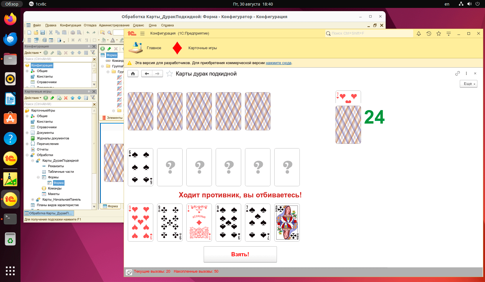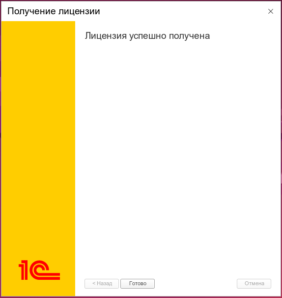 Теперь можно запустить базу и попробовать получить лицензию. Но не все так просто, система прав в Linux реализована по другому и поэтому получить лицензию мы сможем только для себя, сервер 1С:Предприятие, который работает под собственным пользователем такую лицензию не увидит. Поэтому отказываемся от ее получения.