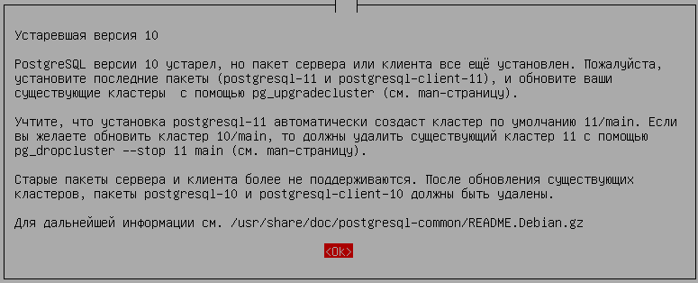 Также обратите внимание, что мы везде, где это возможно, использовали подстановочные символы в именах пакетов, это позволяет успешно использовать эту инструкцию вне зависимости от версии PostgreSQL 10 и пакетов libssl1.0.0 и libicu55 , однако будьте внимательны, в директории не должно находиться иных пакетов, чьи имена могут попасть под маску, иначе это может привести к непредсказуемым последствиям.