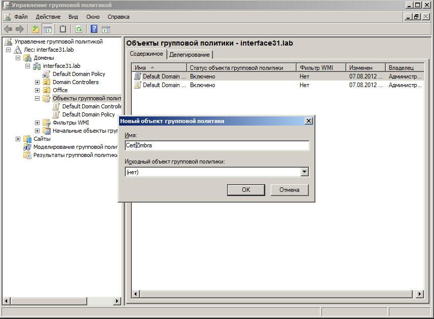 Сегодня мы рассмотрим распространение сертификатов на примере корневого сертификата Zimbra, который мы экспортировали в прошлой статье. Наша задача будет стоять следующим образом - автоматически распространять сертификат на все компьютеры входящие в подразделение (OU) - Office. Это позволит не устанавливать сертификат туда, где он не нужен: на севера, складские и кассовые рабочие станции и т.д.