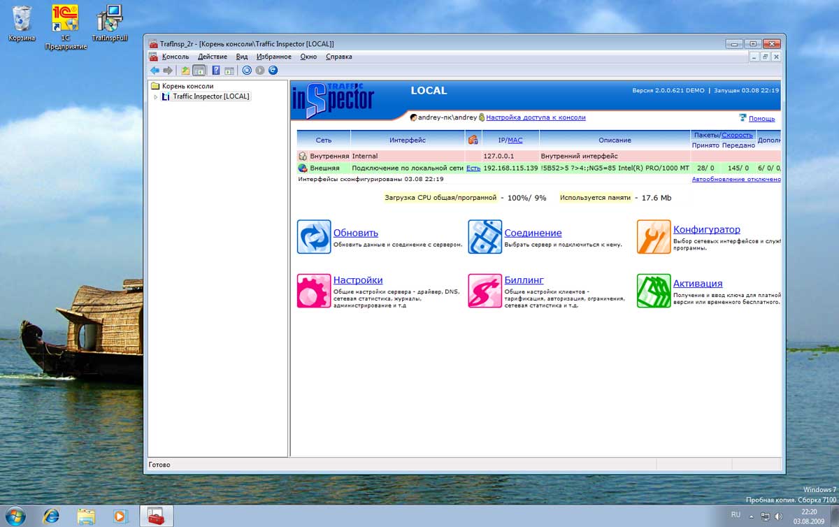Traffic Inspector одно из самых популярных решений для раздачи и подсчета трафика в небольших сетях, как домашних, так и офисных. Во многом это обусловлено разумной ценовой политикой разработчика, хорошим функционалом, стабильной работой и простым и понятным интерфейсом. Зачастую в качестве «сервера» используется обычная рабочая станция с обычной настольной ОС, что и понятно, заводить выделенный сервер для раздачи интернета на 5-10 пользователей дорогое удовольствие. В свете грядущего перехода на Windows 7 (а многие уже с удовольствием используют RC) мы решили проверить, как обстоят дела с совместимостью этих продуктов.
