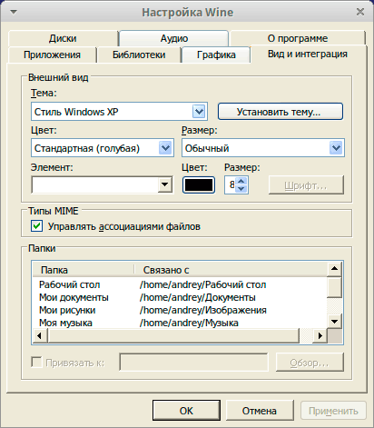 И на вкладке Вид и интеграция при помощи кнопки Установить тему загрузим указанный выше файл, после чего нам станет доступна тема Стиль Windows XP.