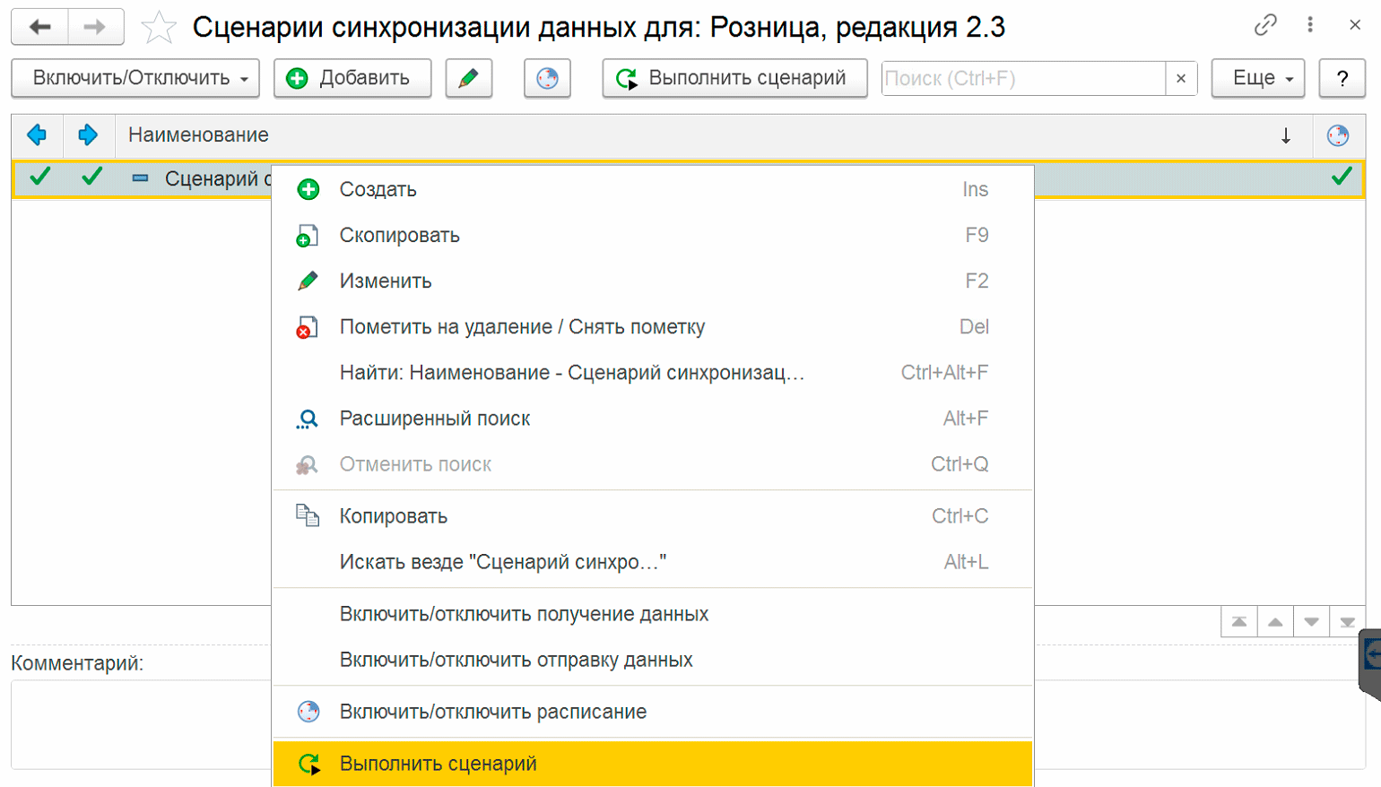 Затем выберите сценарий синхронизации и в меню правой кнопки мыши выберите Выполнить сценарий, обычно это не займет много времени.