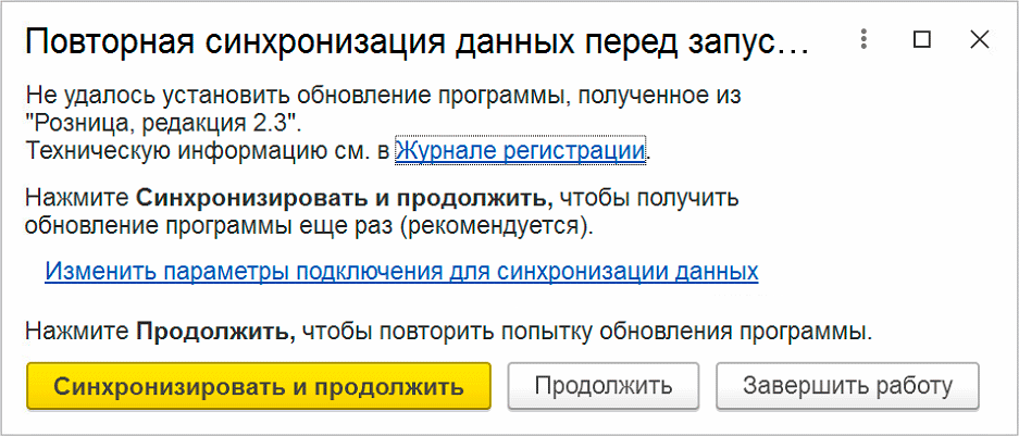 При входе с полными правами предлагается выполнить повторную синхронизацию с центральным узлом, но она завершается неудачей.