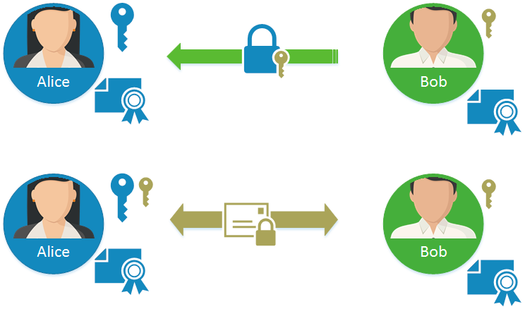 Боб, желая написать сообщение Алисе получает от нее сертификат и шифрует свое сообщение содержащимся в нем открытым ключом. Точно такой же сертификат может получить и Ева, но это не даст ей ничего, так как прочитать зашифрованное открытым ключом не может никто, кроме Алисы.