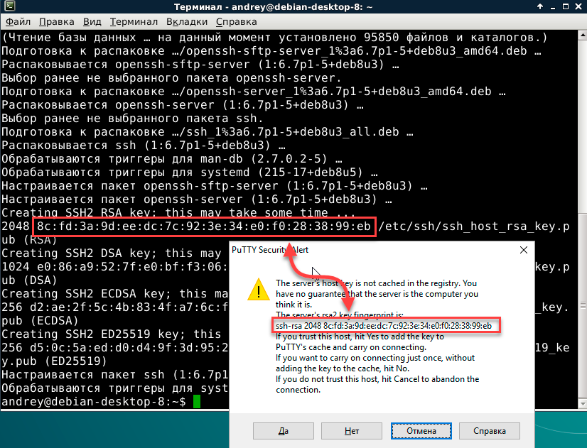 В дальнейшем значение хэша кешируется и при последующих соединениях отпечаток ключа сервера сравнивается со значением из кеша. Поэтому получив повторно подобный запрос с иным значением хеша следует глубоко задуматься и незамедлительно начать расследование, так как изменение отпечатка говорит о том, что вы подключаетесь к иному узлу (либо администратор переустановил ОС или вручную перегенерировал ключи).