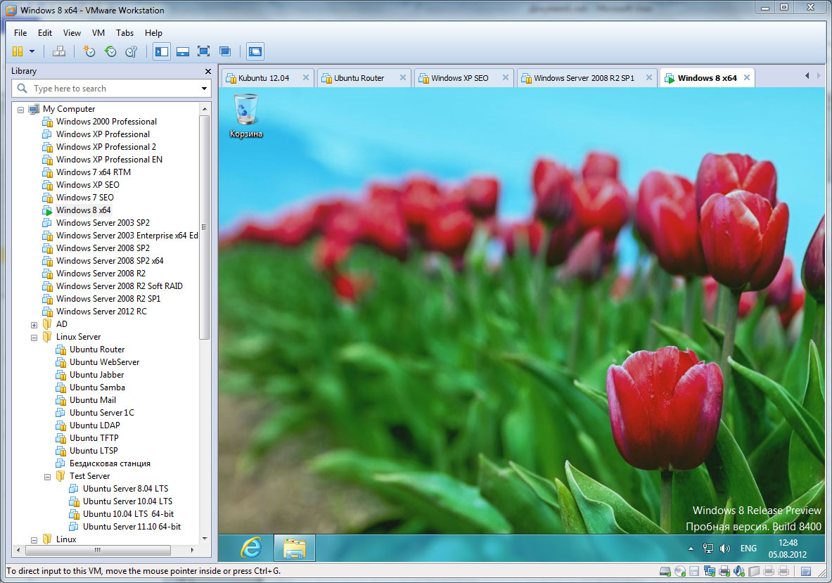 На рисунке ниже окно средства настольной виртуализации из нашей тестовой лаборатории в окне которого запущена ОС Windows 8.