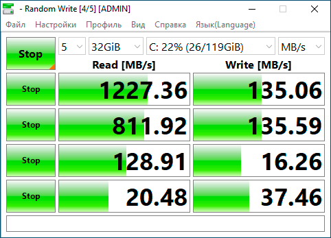 Понятно, что это TLC и за пределами SLC-кеша у него будут несколько иные параметры, для этого мы провели еще один тест:
