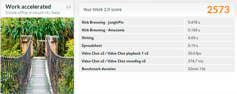 В тесте Work accelerated данный ПК набрал 2573, против 1388 у Intel, продемонстрировав отрыв практически в два раза. Это еще раз показывает возможности архитектуры Zen, которая обеспечивает высокую производительность не только в настольном сегменте, но и в таких специфических областях. Напомним, что тепловой пакет данного процессора всего 6 Вт, у Celeron 1900 - 10 Вт.