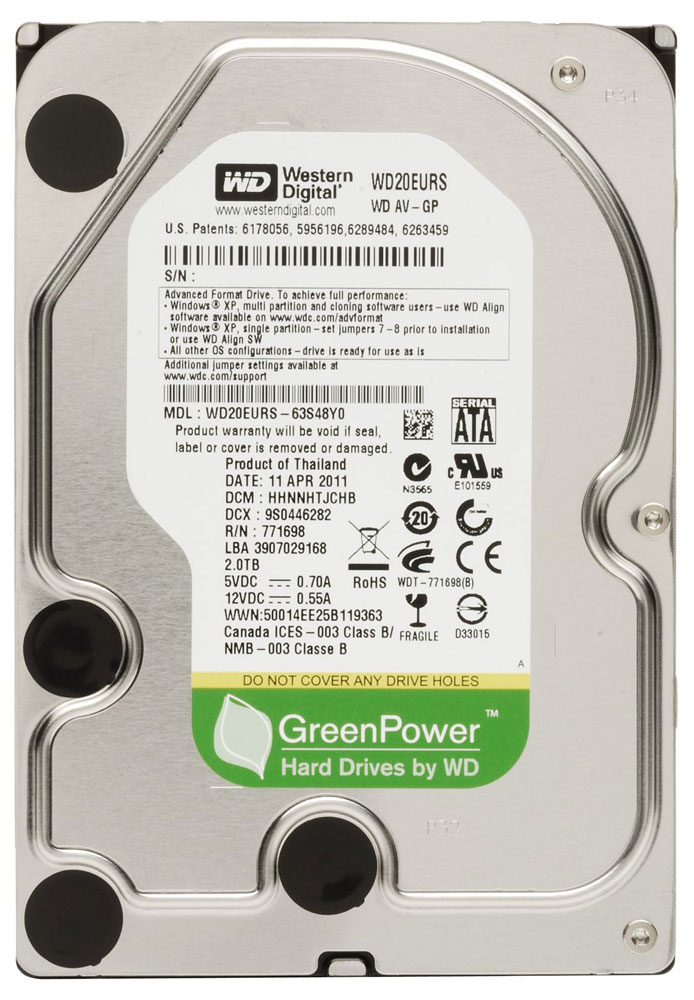 2 Tb SATA-II 300 Western Digital AV-GP WD20EURS 64Mb судя по описанию и характеристикам является представителем зеленой "экономичной" серии WD с прошивкой оптимизированной для работы с потоковым видео. По этой же причине производитель не рекомендует использовать его использовать в настольных системах и серверах.