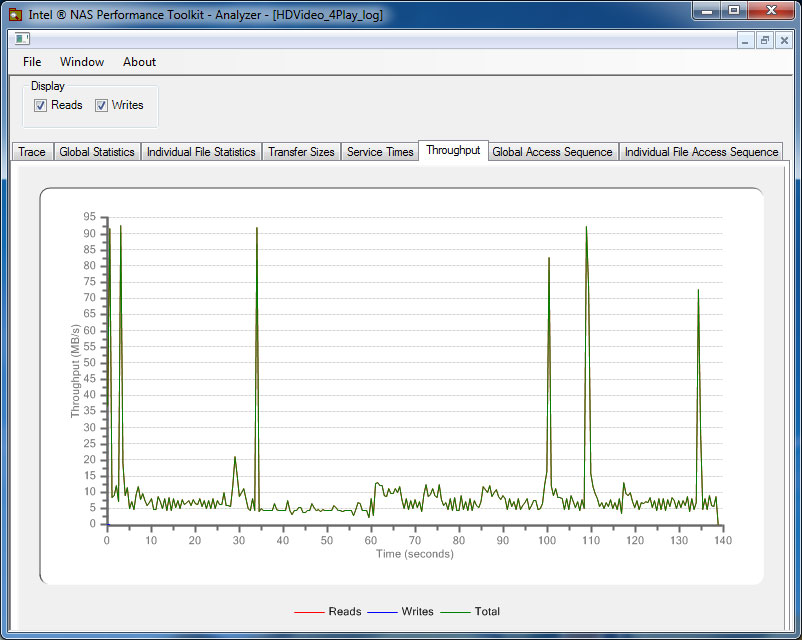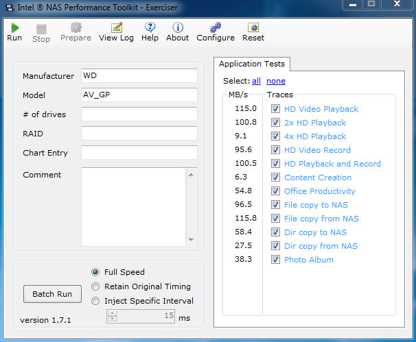 Пока что перед нами диск с очень невысокими характеристиками и весьма специфичным назначением. Посмотрим что он покажет в реальных сценариях, для этого мы используем тест Intel NASPT.