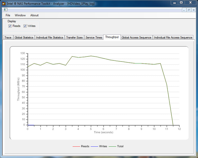 Посмотрим на более подробные графики. Воспроизведение в один поток - вопросов нет, диск обеспечивает максимальную производительность на протяжении всего времени.