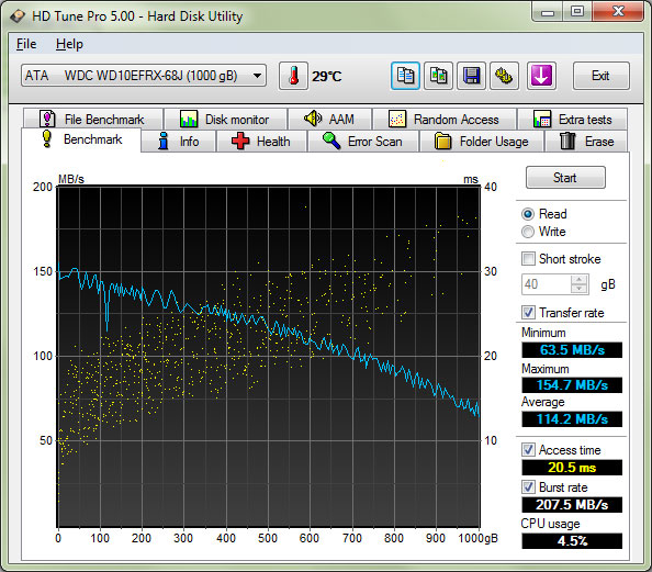 Перейдем к более подробным тестам с использованием HD Tune Pro 5.0.
