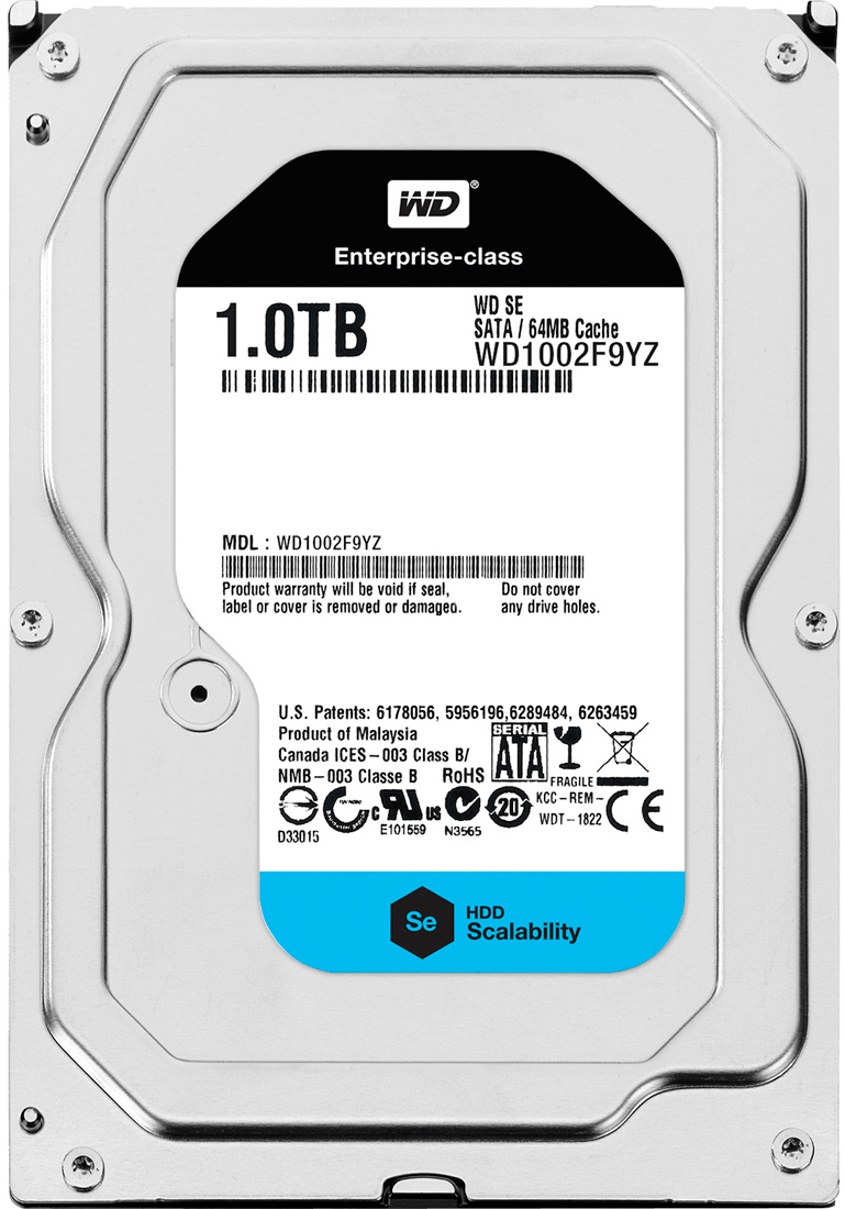 Перейдем к герою нашего обзора. К нам в руки попал 1 Tb SATA 6Gb/s Western Digital Se WD1002F9YZ, стоимость данного диска составила 82 USD или 8,2 цента за 1 Гб емкости. Для сравнения WD Red аналогичной стоимости на момент тестирования стоил 71 USD или 7,1 цента/Гб, Seagate NAS еще дешевле - 6,4 цента/Гб.