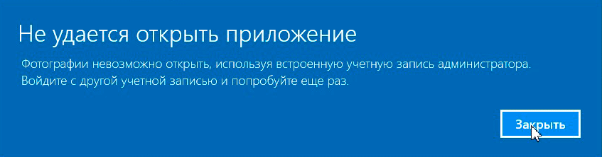 Windows 10. Приложение невозможно открыть используя встроенную учетную запись администратора