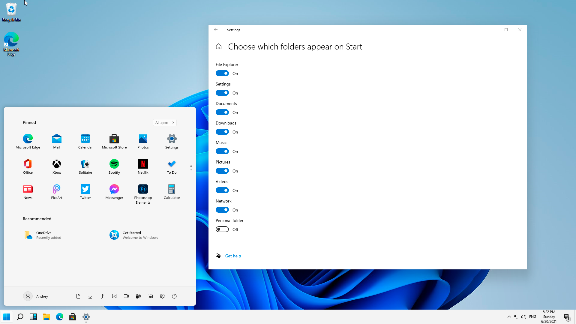 Блок рекомендаций также неотключаемый, из него можно убрать все значки, но он так и останется висеть пустым пространством, хотя на его месте можно было бы отображать закрепленные значки. Надеемся, что это только недоработка и к релизу все-таки дадут возможность более гибко настраивать видимую область меню.