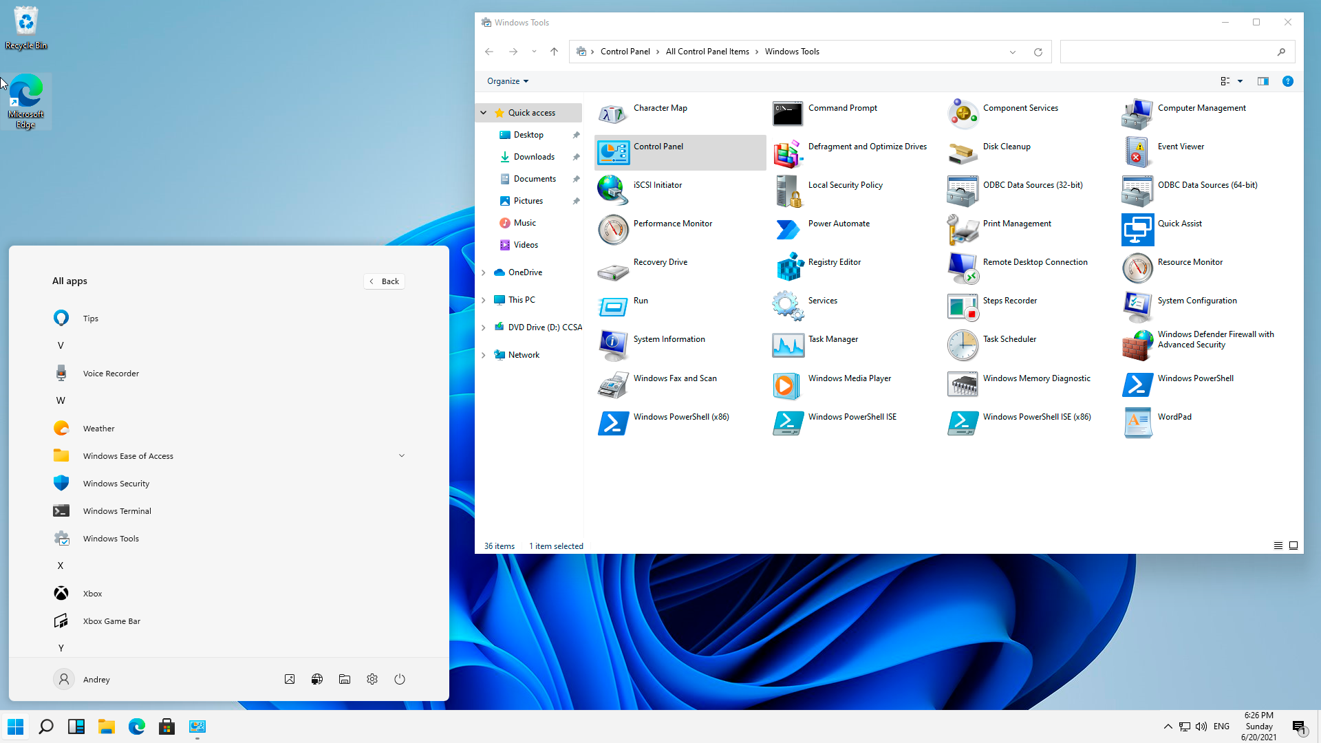 Из средств администрирования в системе по умолчанию уже установлен Windows Terminal и добавлен новый пункт меню Пуск - Windows Tools, который предоставляет быстрый доступ к целому набору классических инструментов, аналогов которым в современном интерфейсе нет. Такой подход можно только приветствовать, ранее администраторы самостоятельно формировали в меню Пуск наборы живых плиток с наиболее необходимыми инструментами.