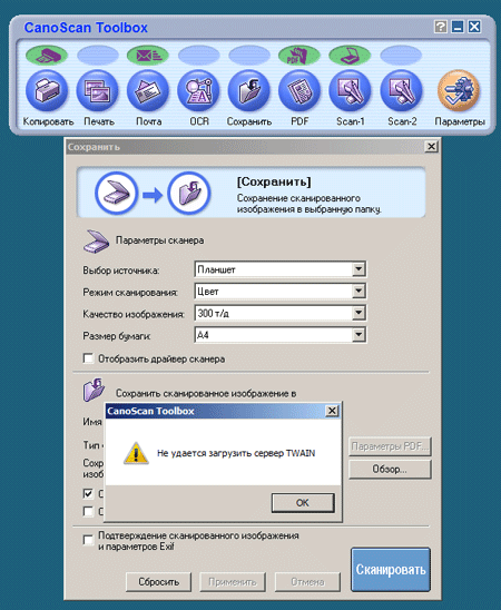 Начнем по порядку, в наличии имелся сервер под управлением Windows Server 2008 SP2 64-бит и далеко не новый сканер Canon LiDE 25. Ничто не предвещало беды, сканер нормально определился и установил необходимые драйвера, без проблем установилась фирменная утилита, казалось бы - работай.