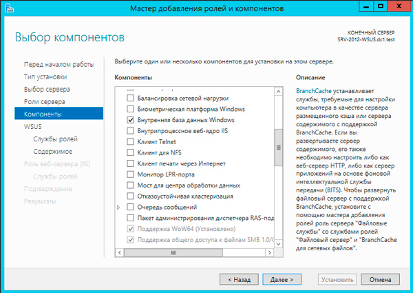 Важно! Существует ряд ограничений на установку служб ролей WSUS. Сервер БД WSUS не может быть контроллером домена, Сервер WSUS не может быть одновременно сервером терминалов Remote Desktop Services.