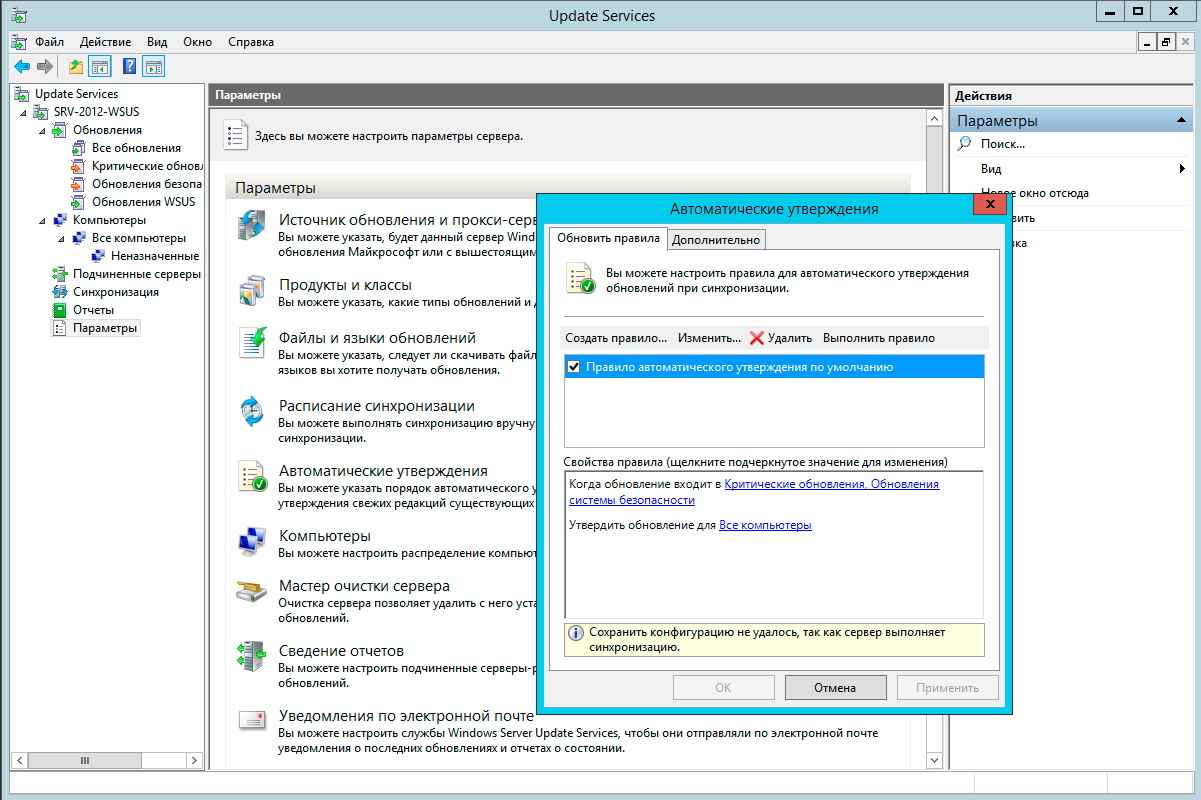 Не забудьте указать правила автоматического одобрения и одобрить уже скачанные обновления.