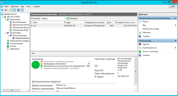 Путь к серверу следует прописывать как http://SERVER_NAME:8530, при этом рекомендуем явно указывать порт службы. Через некоторое время компьютеры начнут получать обновления и появятся в консоли сервера, где можно получить детальную информацию по уже установленным и требующимся обновлениям.