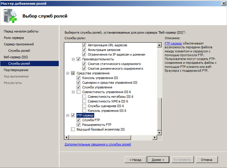 А для веб-сервера установите службу FTP-сервер.