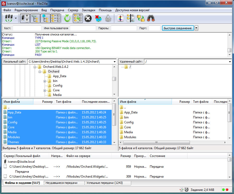 Мы будем устанавливать Orchard CMS, для получения пакета пройдите по ссылке и выберите Загрузить как zip, распакуйте полученный архив и закачайте в корень сайта содержимое папки Orchard.