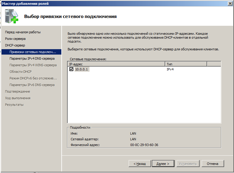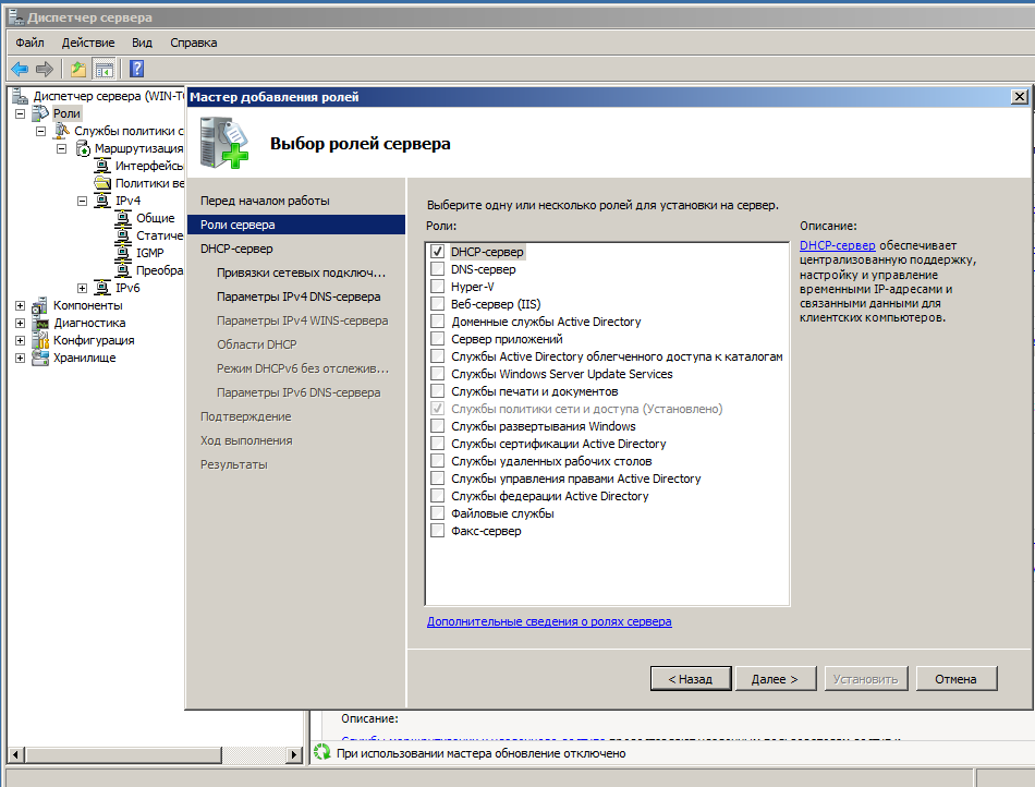 Следующим шагом отказываемся от поддержки IPv6 и после установки роли DHCP сервер готов к работе без каких либо дополнительных настроек. Можно проверять работу клиентских машин.