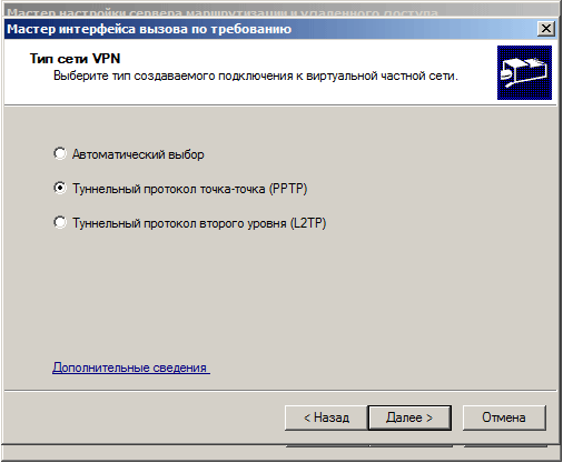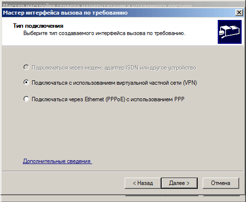 Остальные параметры оставляем в значениях по умолчанию и заканчиваем работу мастера. После чего служба маршрутизации будет запущена и в сетевых интерфейсах появится интерфейс вызова по требованию, в нашем случае VPN.