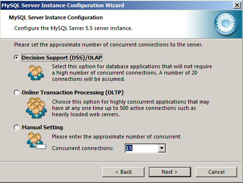 Так как наша система не относится к высоконагруженным (иначе вам нужно изучать иные статьи), то на следующем экране выбираем Decision Support (DSS)/OLAP: