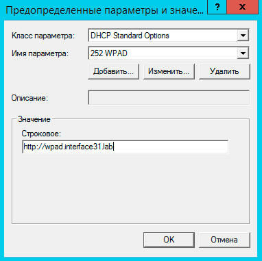 Затем нажмите ОК и в поле Значение - Строковое введите адрес расположения PAC-файла, в нашем случае это http://wpad.interface31.lab